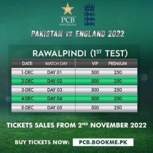 Tickets for 1st Pakistan vs England Test to be available online on Wednesday Pakistan Cricket Board (PCB) has announced ticket prices for the first Test
