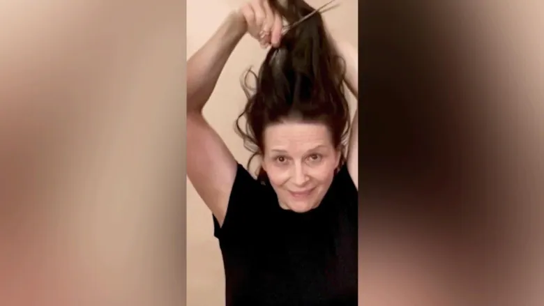 “For freedom,” Binoche exclaimed as she brandished a large handful of her own hair in front of the camera after cutting it off with a pair of scissors.