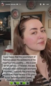 Maria B. expressed her relief at the censor board’s decision to completely ban the movie, and she also thanked Maryam Aurangzeb for taking this action.