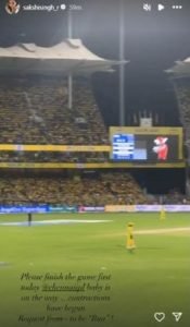 Veteran wicket-keeper batter MS Dhoni’s wife Sakshi Dhoni was in attendance at the M Chidambaram Stadium in Chennai and her Instagram story during the game has gone viral. “Please finish the game fast today @chennaiipl baby is on the way…contractions have begun Request from – to be Bua,” she wrote.