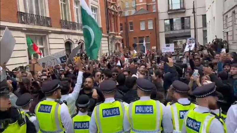 Protests were held in London on Sunday by Pakistan Tehreek-e-Insaf (PTI) activists against the removal of Prime Minister Imran Khan.
