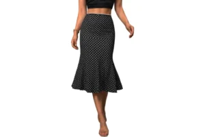 Polka dots never go out of style, and this midi skirt delivers a flattering, curve-skimming silhouette with a flowy hem made for movement. Styled with a lace cami or fitted tee, it offers an effortlessly feminine look that transitions well from day to night.