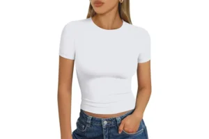 A fitted cropped tee is one of the most versatile items in a spring wardrobe. This style pairs effortlessly with jeans, tailored trousers, skirts, linen pants, and even loungewear. Available in an inclusive size range and dozens of colors, it offers a flattering silhouette that works for both casual and polished looks.