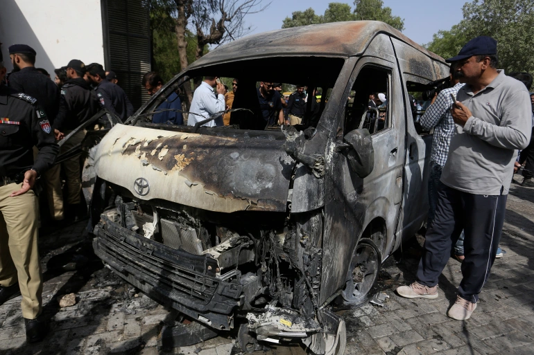 Four people, including three Chinese nationals – two women and a man – were killed and scores more injured when a van parked inside the University caught fire following a powerful explosion on Tuesday.