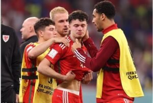 Before Monday night’s opening encounter between Wales and the USA, Wales defender, Neco Williams sent a message on social media advising of the passing of his grandfather. Williams, who was replaced in the second half of the 1-1 tie with the USA, broke down in tears. He was also spotted paying respect to his grandfather by pointing up into the sky.