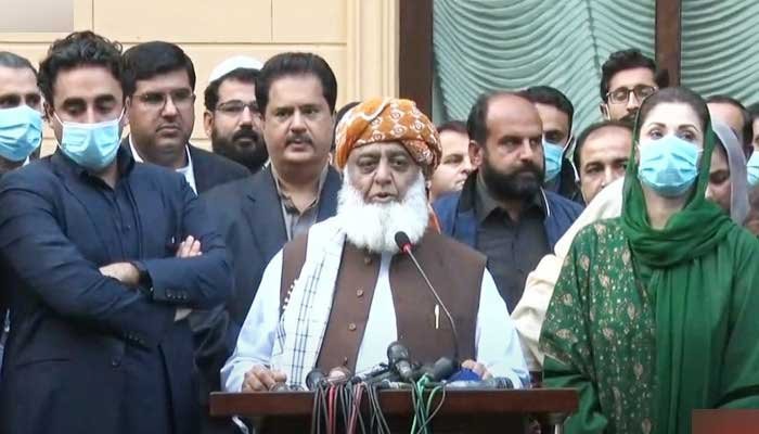 JUI-F chief Maulana Fazlur Rehman told a press conference at the Prime Minister’s House that if the Supreme Court does not form a full court, “then we [PDM] will also reject all decisions of the judiciary as we will not appear before this three-member bench.”