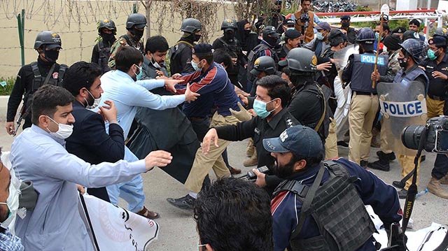 The police opened the highways leading to the Red Zone while the demonstrators yelled slogans against the Balochistan chief minister.